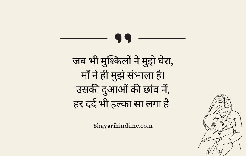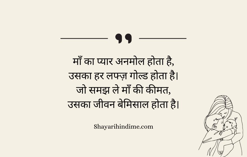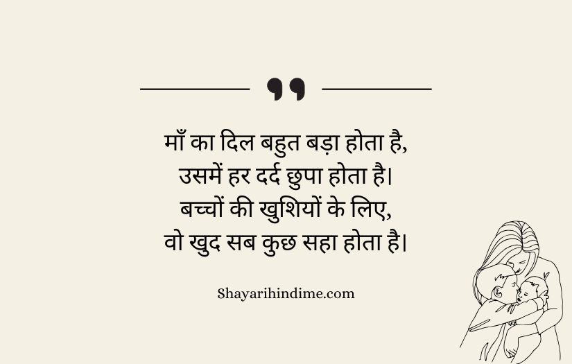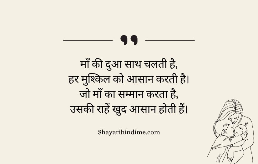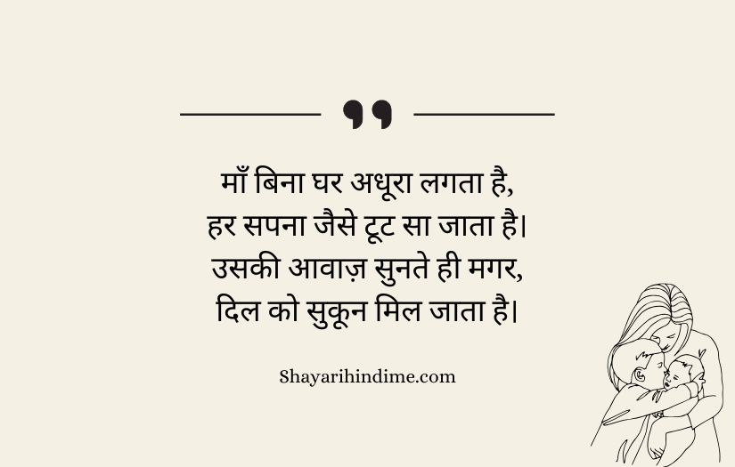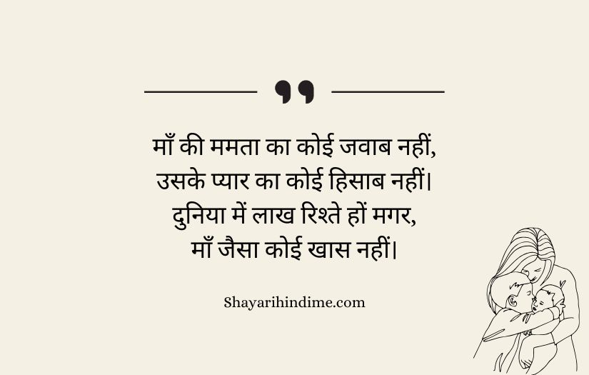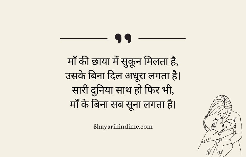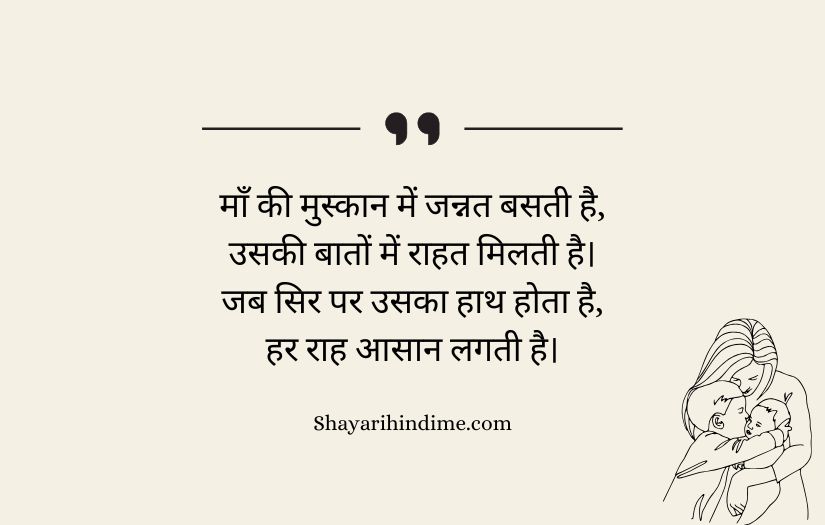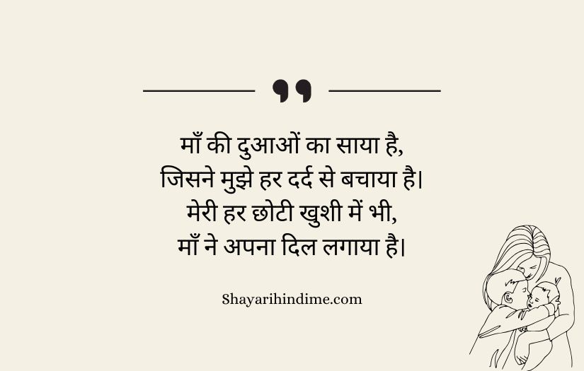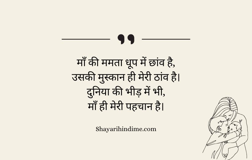 Maa ke liye shayari in Hindi expresses the deep love, respect, and gratitude that one feels for a mother. It highlights a mother’s unconditional care, sacrifices, and endless support throughout life. These poetic lines beautifully capture the emotional bond between a mother and her child, showing how her love is pure and selfless.