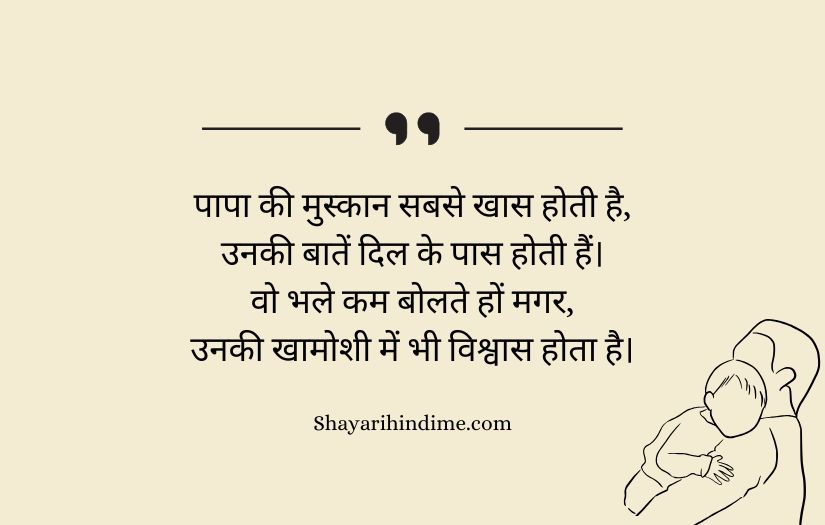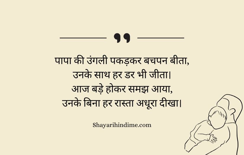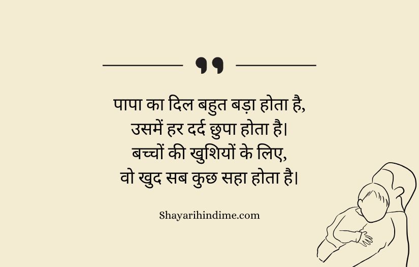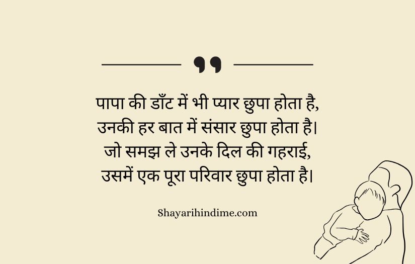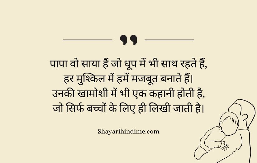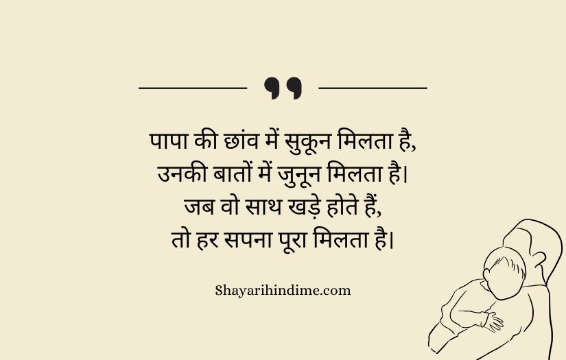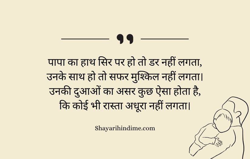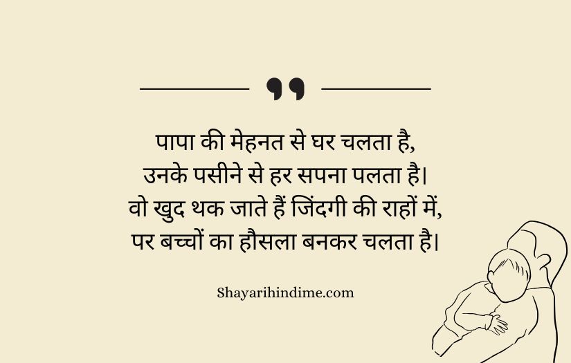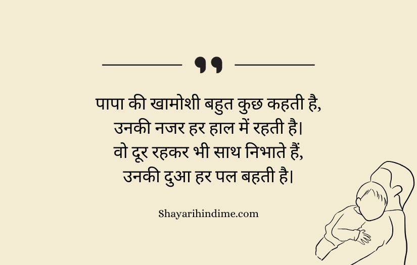 Papa ke liye shayari expresses deep respect, love, and gratitude for a father’s role in our lives. It highlights the sacrifices, hard work, and silent struggles that fathers often go through to provide a better life for their children. These poetic lines beautifully show how a father becomes a strong pillar of support and protection for the entire family.