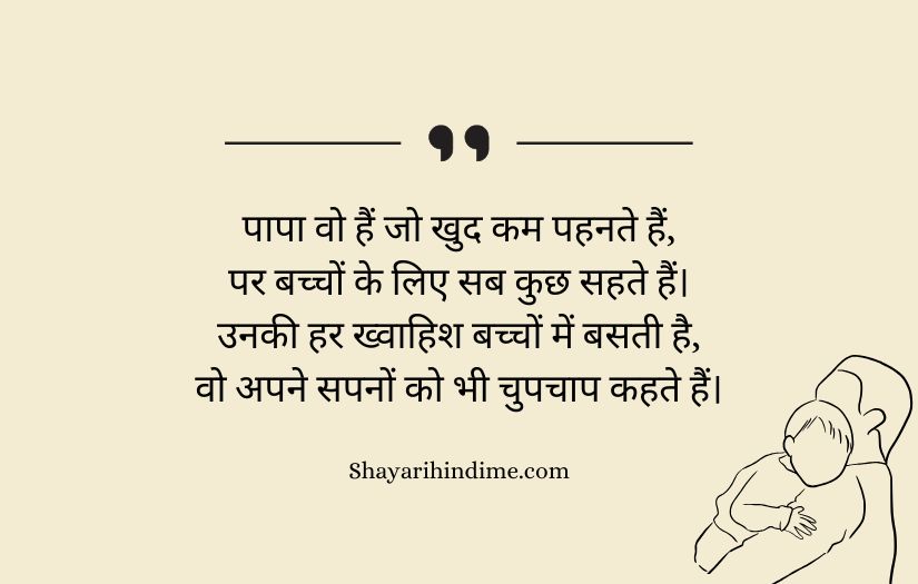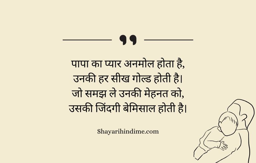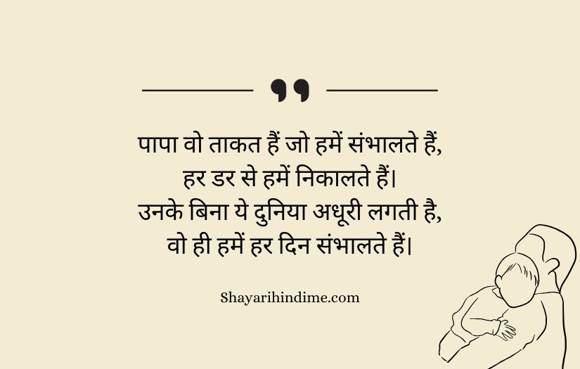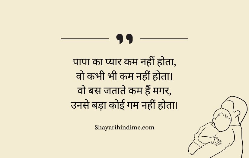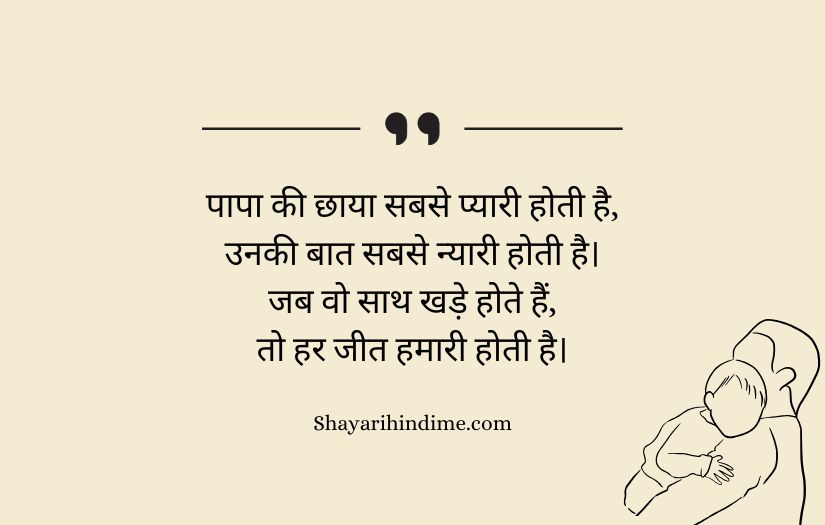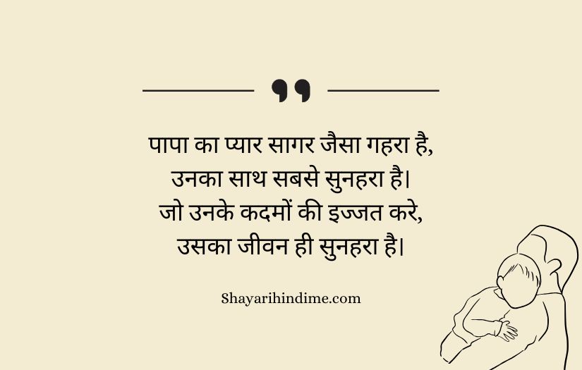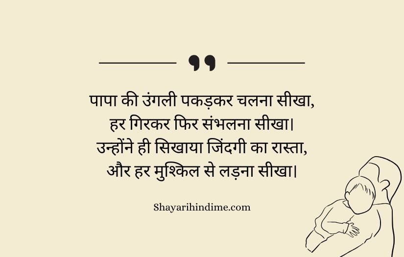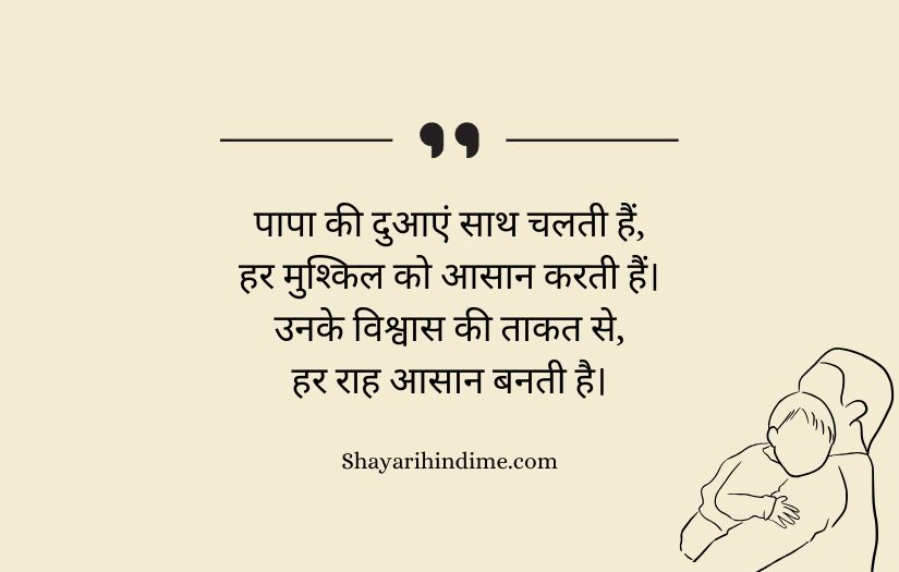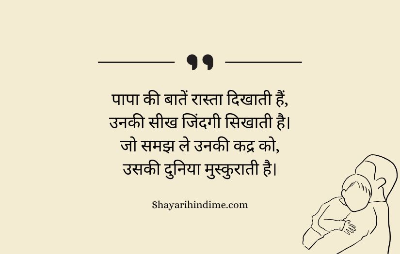 Papa ke liye shayari expresses deep respect, love, and gratitude for a father’s role in our lives. It highlights the sacrifices, hard work, and silent struggles that fathers often go through to provide a better life for their children. These poetic lines beautifully show how a father becomes a strong pillar of support and protection for the entire family.